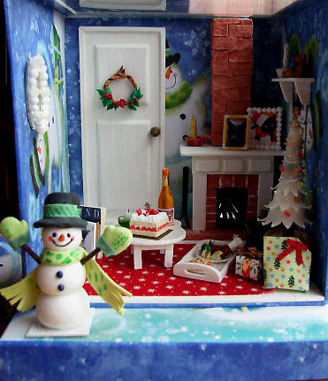 部屋の右側には、暖炉や飾り棚を・・・ 飾り棚の上には、キャンドルとクマのぬいぐるみを 1cm強の大きさのぬいぐるみには少し 悪戦苦闘しました(・・; |