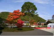 淡路の白砂利を敷きつめ、黒御影石の石舞台を配した庭園は世阿弥の「風姿花伝」をイメージして作られました。総ガラス張りのロビーからは、城山の椎の原生林と岩国城を借景とした四季折々の自然をお楽しみいただけます。