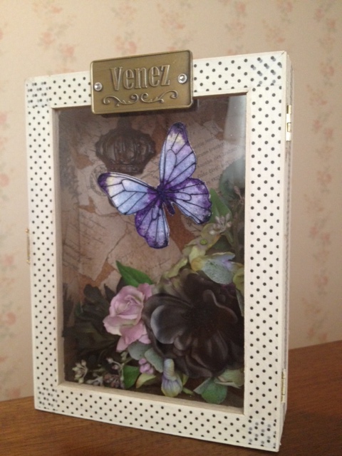 シルクスレッドアートコラージュセミナー エンプティーボックスに蝶をシルクスレッドアートしてフランス製の