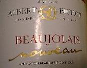 1998年11月27日ものくろ邸 メインワイン ボージョレーヌーボー 11月第3木曜日解禁のおなじみワイン。特別にうまいと言うわけではないが、風物詩としてこの時期には欠かせない。 ビラージュという格付けは、これより上ランク。 |