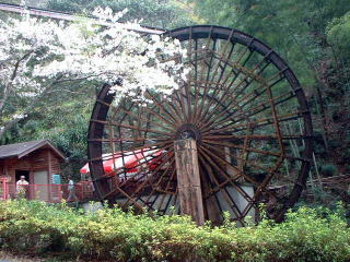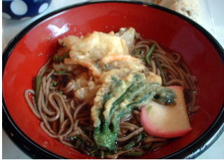 | 観音水車「でかまるくん」 | 山菜天ぷらそば |