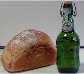 | 頂上の(千畳敷カントリーキッチン)で焼いている天然酵母石窯パンとグロールシュというビール |