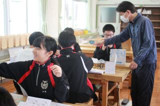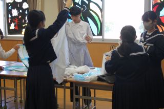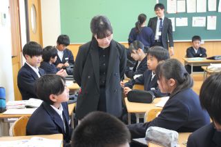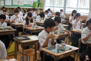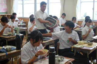6月5日(木)本日は、おむすび弁当の日です。いくつかの教室をまわり、子どもたちが握ったおむすびの写真を撮りました。とてもおいしそうです。5校時には、2年生の教室で教育実習生が「家庭科」の査定授業の指導をしていました。「衣服の選択と手入れ」という題材で、衣服の繊維の種類と性質について、子どもたちに学ばせ、繊維から衣服を選ぶことができるように深く考えさせています。