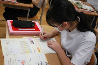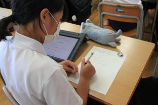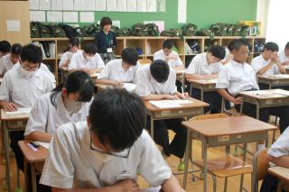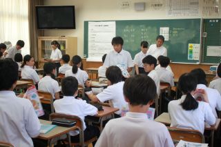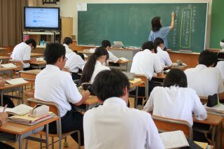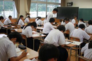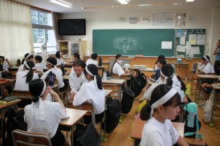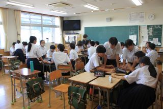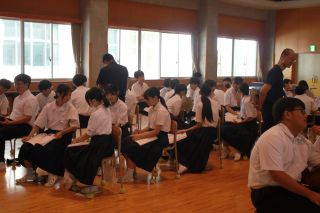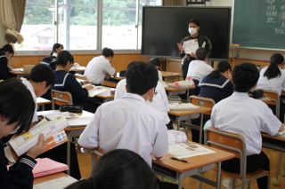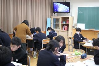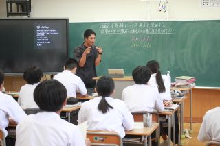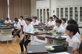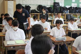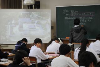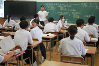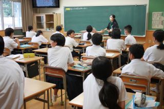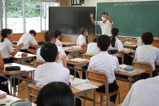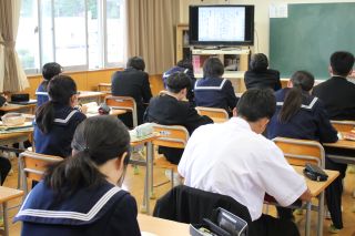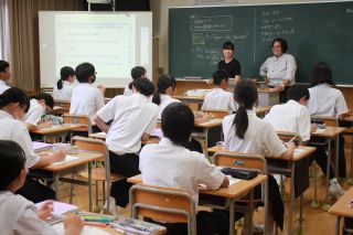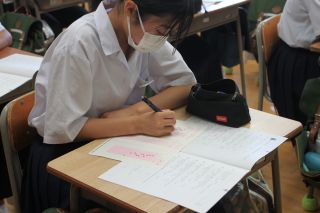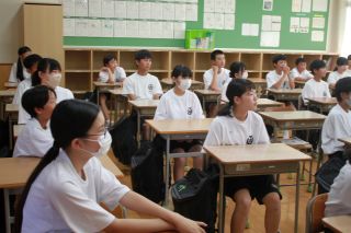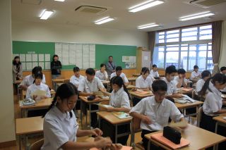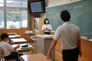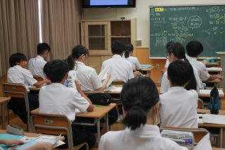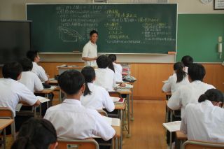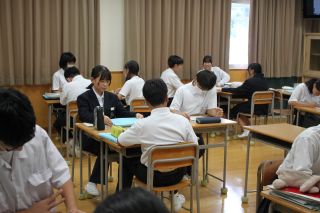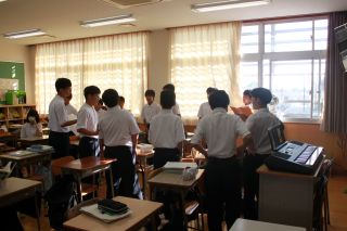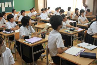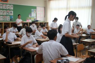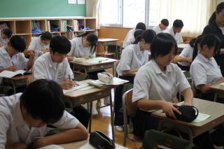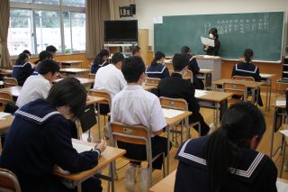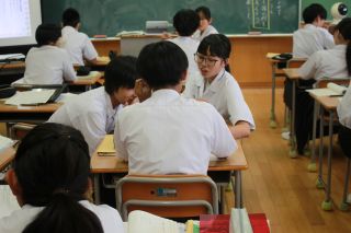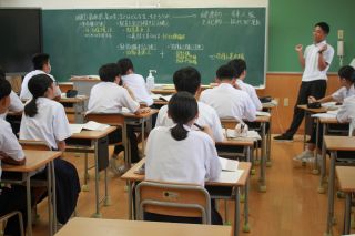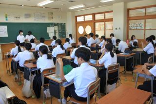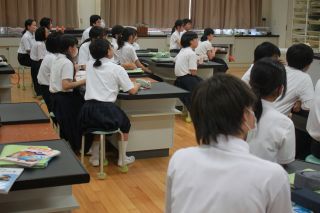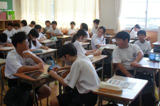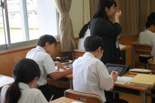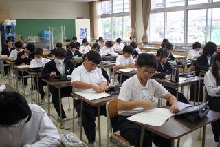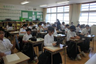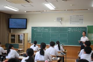 9月4日(木)1校時の授業の様子です。私が参観したときは、教員が説明し、それを生徒が聞いている場面が多かったのですが、生徒たちは真剣に説明を聞き、しっかりと考えている様子がうかがえました。
