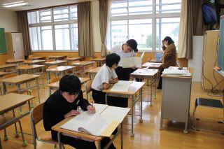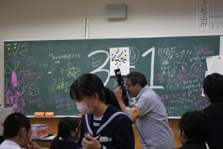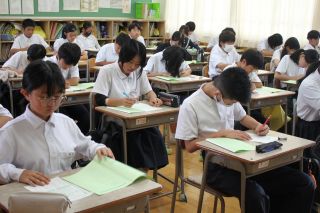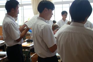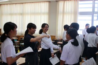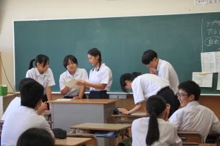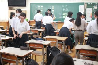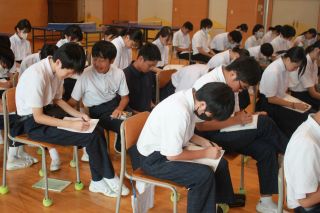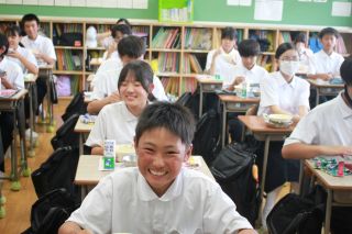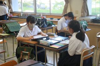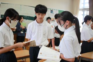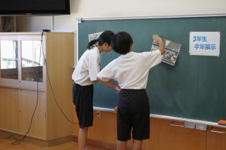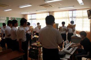 7月15日(火)昨日お知らせした通り、本日から懇談会が行われています。生徒は3校時までの授業で、今日と明日の2日間は給食を食べた後に、下校するか、部活動をして下校するかのどちらかになります。1年生は、2、3校時にクラスマッチをして、クラスの団結力を高めています。競技種目は、「写真パズル」と「バレーボール」です。また、午後は、地域の方が美術部員とともに「絵葉書づくり」を楽しんでおられます。