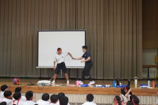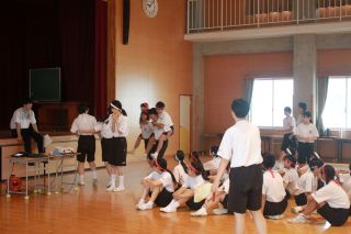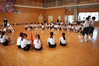6月12日(木)2校時に、教育実習生による保健体育科の査定授業が実施されました。バレーボールの単元の授業で、子どもたちは3人のチームを作り、実際に相手チームとネットを挟んでボールに触れながら、どのようにしたら得点しやすいかについて考えを深めました。動くときはきびきびと動き、話し合うときには相手の意見を受けとめ、落ち着いて自分の考えを述べる。参観していて清々しい気持ちになる授業でした。