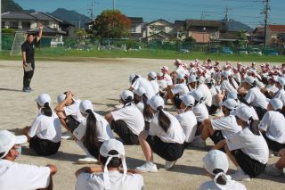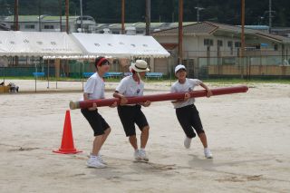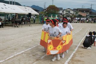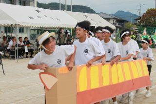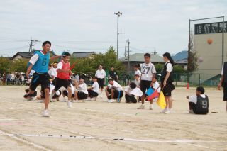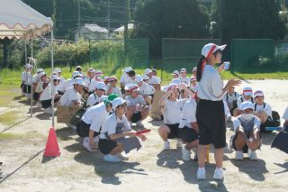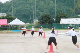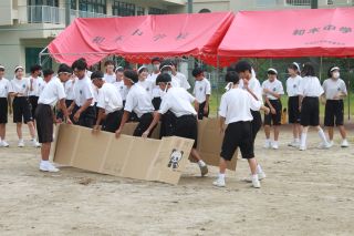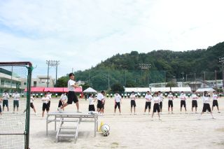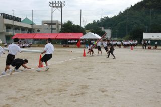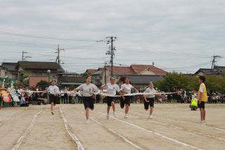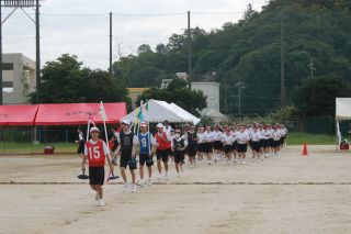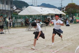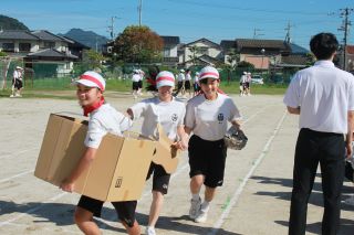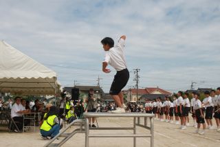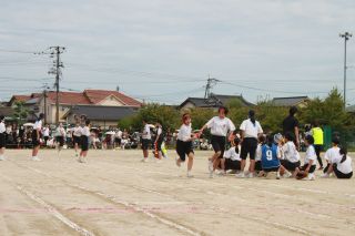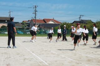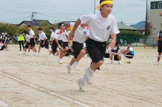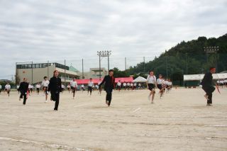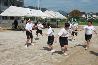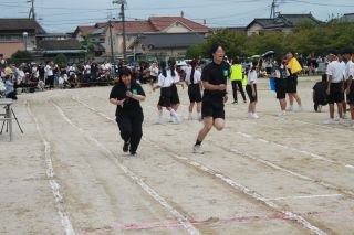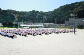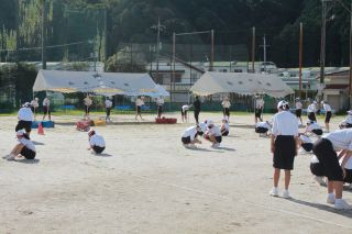 9月24日(水)本日は体育祭予行でした。体育祭本番に向け、入場行進から閉会式までとおして練習をしました。応援合戦や色別対抗リレーのように、おおまかな動きだけを確認した種目もありますが、修正すべきポイントが明らかになり、体育祭がより充実したものになりそうです。途中で、和木こども園の年長児さんが、かけっこのお手本を見に来校しました。かわいい声援に後押しされ、生徒たちは自信をもって走りました。