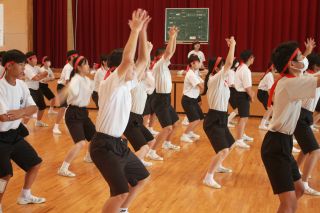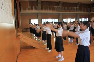 9月25日(木)体育祭練習6日目です。本日は、昨夜からの雨の影響で室内での練習になっています。昨日の予行における気づきを確かめながら、生徒は本番に向けて競技や演技をよりよいものにしようと頑張っています。