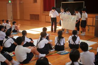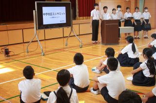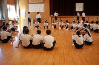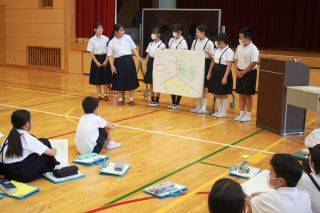 9月12日(金)昨日の放課後、和木小学校の体育館で本校3年生の生徒会役員10名と和木小学校6年2組児童が「ミニサミット」を開き、和木町園小中の「心の教育部会」でキーワードにしている「いい言葉」に関わる課題及び成果を含めた現状や今後の取組等について話し合いました。本日、2校時の授業の様子とともにご覧ください。