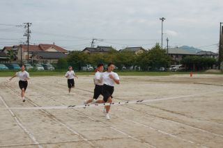 10月22日(水)文化祭翌日の26日(日)、IWAKUNI絆EKIDENが、愛宕スポーツコンプレックス陸上競技場をメイン会場に、その周辺で行われます。本校では、参加者を募集し、応募してきた有志14名が、男女混合で「中学校男子の部」に2チーム出場します。体育祭が終わってから、部活動がある日の部活動後、学校で練習に取り組んできました。チームがまとまっての練習回数は少なかったですが、各自が自主練を行い、大会に備えています。当日は 、自己ベストの走りができるよう頑張ってほしいと思います。昨日の練習の様子を、本日5校時の授業の様子と合わせて写真でご覧ください。