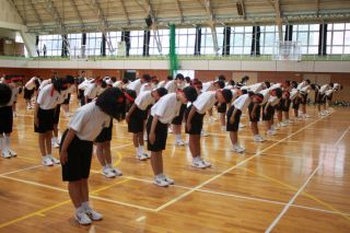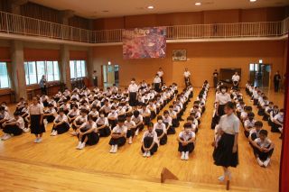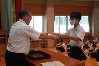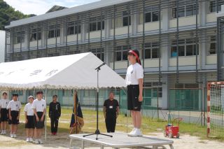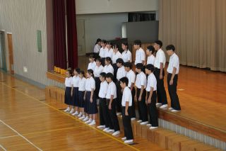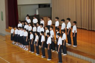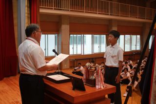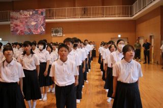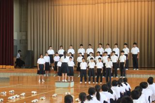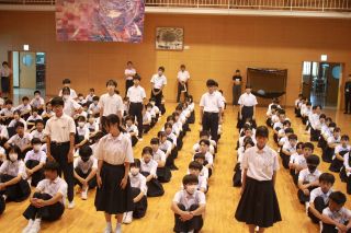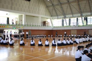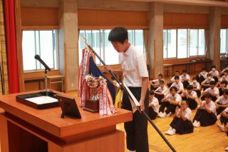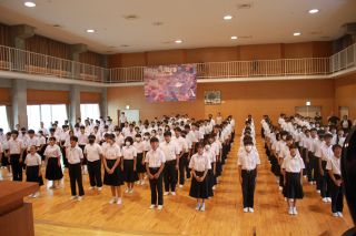 7月18日(金) 山口県選手権大会の壮行式と1学期の終業式を多目的スペースで実施しました。1学期に様々な行事がありましたが、夏休み中にも部活動、体育祭に向けての準備や労作活動、3年生を対象に高等学校が開催するオープンスクール等、多くの活動があります。子どもたちには、熱中症を警戒しながら、目的意識をもってそれぞれの活動にしっかりと取り組んでほしいと思います。