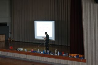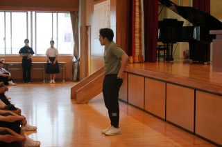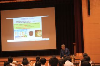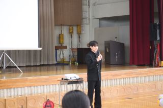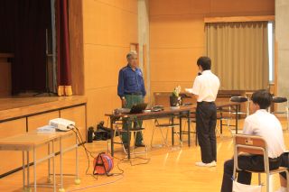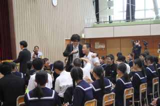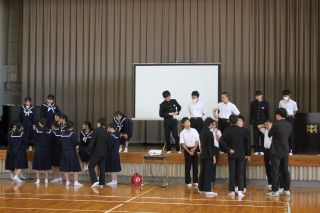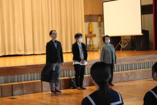 11月5日(水)11月の生徒集会が開かれました。また、10時にシェイクアウト訓練が行われ、緊急地震速報の発令にあわせて生徒は即座に机や椅子の下にもぐり、頭部を守りました。本日の昼食時にはゆびとまさんが来校され、サン=テグジュペリの『星の王子さま』を朗読していただきました。さらに、5校時には2年2組の生徒を対象に、岩国市・和木町中学校教育研究会理科部会の研究授業が行われました。岩国市内の中学校理科の先生方だけでなく、講師として山口大学の佐伯英人教授が来校され、生徒が「電磁誘導」について学ぶ姿を参観されました。
