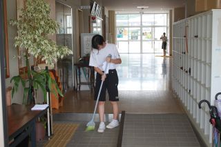 5月12日(月)3校時に民生委員の方々にご協力いただき、3年生がグラウンド周辺の除草作業に取り組みました。民生委員の方々には強い日差しを肌に受けながら、およそ1時間、作業に従事していただきました。おかげをもちまして、作業後、草の少なくなった校地を見渡しながら、多くの生徒がすっきりとした表情を浮かべていました。ありがとうございました。