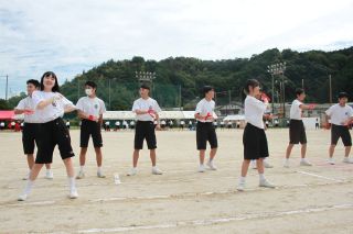 9月17日(水)体育祭に向けて、本格的な練習が始まりました。本日を入れて7日間で、27日(土)に実施予定の体育祭本番を迎えます。暑い中、生徒は仲間と協力しながら頑張っています。