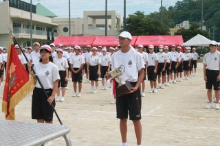 9月30日(火)1校時に、体育祭の解団式を体育館で行いました。解団式は本来、27日(土)の体育祭後に行うものですが、後片付け等を含め時間がおしたため、本日に持ち越されました。赤隊も白隊も、リーダーを中心にいい表情で体育祭を締めくくりました。