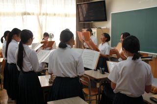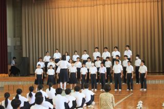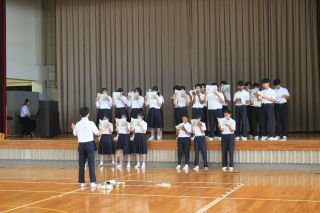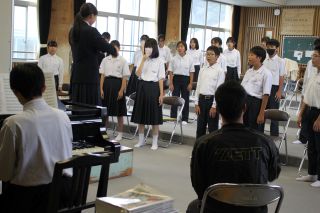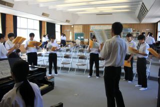 10月7日(火)朝読書のかわりに、各クラス単位で合唱練習を始めて2週目に入りました。本日は、4校時にピアノがある体育館、多目的スペース、音楽室を各クラスに割り当てて使用する第1回目の合唱練習が行われました。歌声が響く校舎はすてきです。