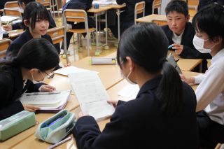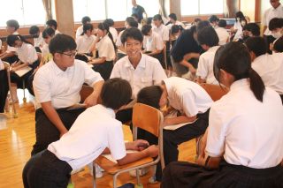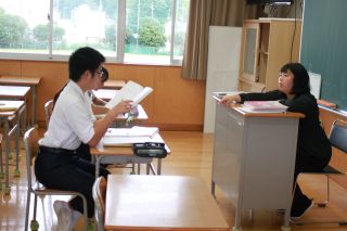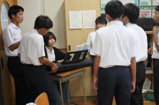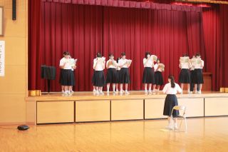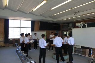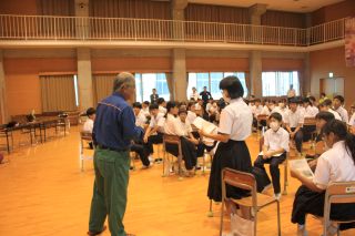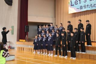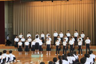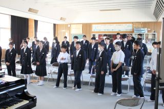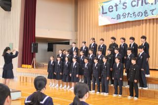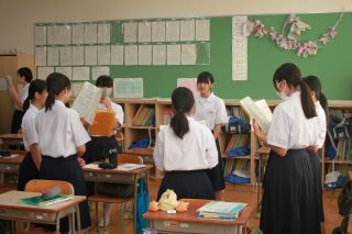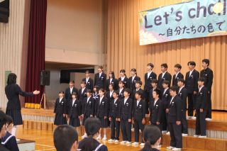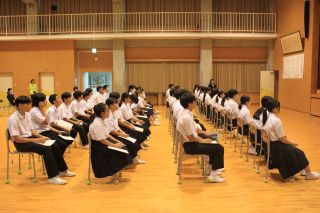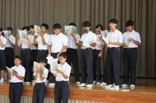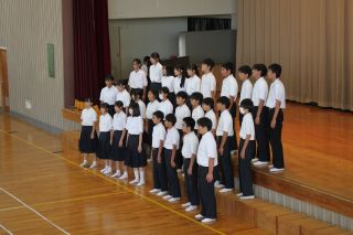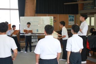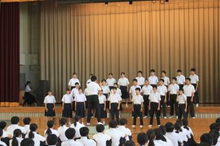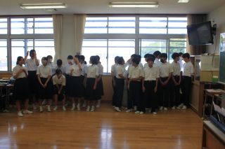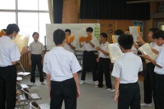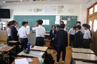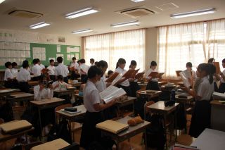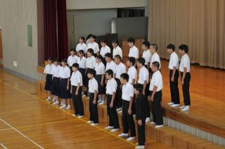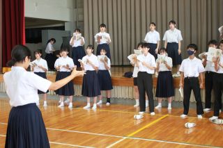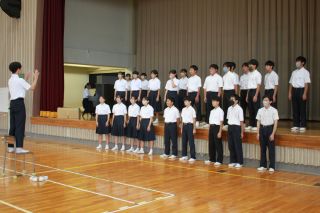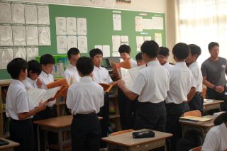 10月14日(火)3校時に合唱練習が行われました。先週金曜日の課題曲中間発表を経て、各クラスともさらに練習に力が入っているように思います。4校時は、文化祭学年企画に向けて準備をする時間でした。どんな企画を発表するのか、今からとても楽しみです。5校時には岩国市・和木町の国語科の教員が本校に集合し、2年1組の生徒を対象にした授業研修会が開かれました。兼好法師による「徒然草」の「仁和寺にある法師」という題の古文が教材でしたが、子どもたちは、この教材の面白さに迫ろうとしていました。また、本日から3日間、岩国YMCAより学校保健実習のため5名の学生が来校しています。子どもたちにとっても貴重な機会です。文化祭に向けての練習や準備を通して、多くのことを子どもたちとともに体験してほしいと思います。