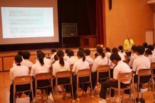7月3日(木)6校時に、多目的スペースで助産師の毛利様と山本様を講師にお迎えし、3年生を対象に性教育講演会を実施しました。和木町保健相談センターからも2名の保健師の方にご来校いただき、会を支えていただきました。積極的に、妊婦体験や赤ちゃん抱っこ体験に臨む3年生の柔らかい笑顔から、彼、彼女らが講師の方のお話から命や相手を思いやって接することの大切さを学びとったのではないかと考えています。