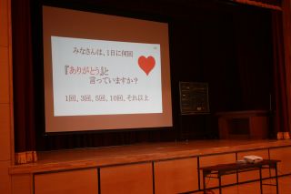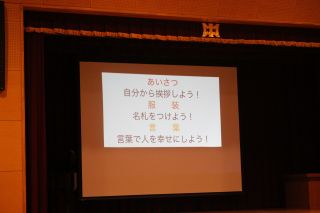 4月14日(月)4月の生徒集会を8時5分から、多目的スペースで行いました。校長から、「ささやかな幸せの積み重ねを実感する日々を送ってほしい」というメッセージとともに、毎月11日の「いい言葉の日」になぞらえて、「冷静に判断し、自分も周りの人たちも嬉しくなるような言葉を遣ってほしい」という話がありました。