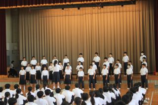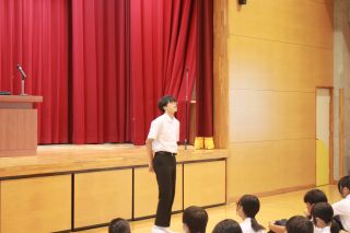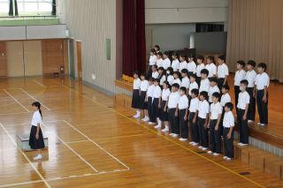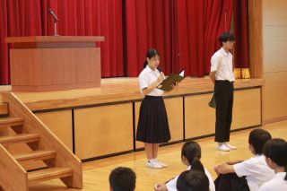 9月1日(月)1校時に多目的スペースで、表彰式と2学期の始業式を行いました。まだまだ、暑い日が続きそうですが、式に臨む子どもたちの表情からは、日々の授業や各種学校行事への意気込みを感じ取ることができました。