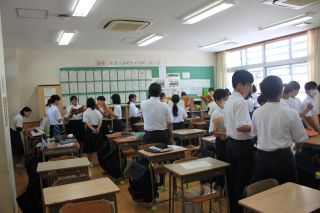 8月1日(金)8月になりました。本日は、登校日です。夏休み中に、様々な活動に取り組んでいる生徒が多く、ホームルームに空席が目立ちました。しかしながら、屋外の暑さと違い、久しぶりに会った友人と笑顔で対話をしている温かい空間を目にし、心が和んでいます。