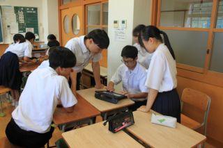 9月11日(木)1、2校時の授業風景です。友人や教員に相談したり、タブレットを使ったりしながら、課題に取り組む姿が印象に残っています。