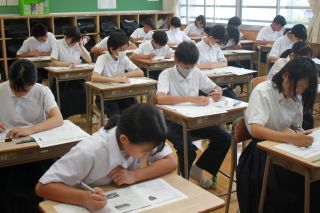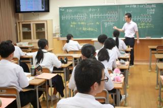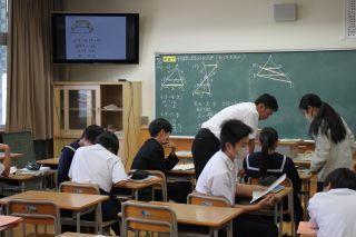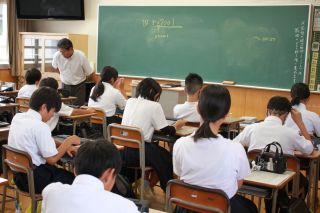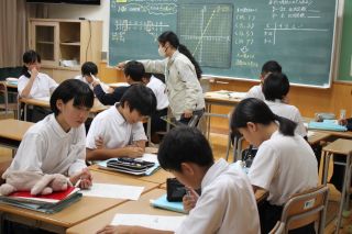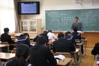 9月5日(金)5校時に、岩国市・和木町中学校教育研究会数学部会の授業が、3年1組の生徒を対象に実施されました。部会の数学科の教員に加え、本校教員も参観する中、生徒たちはいつも通り集中して課題に向き合っていました。