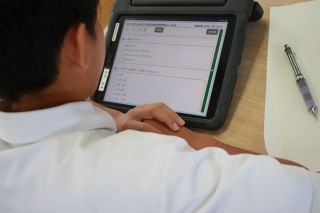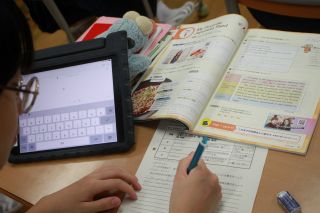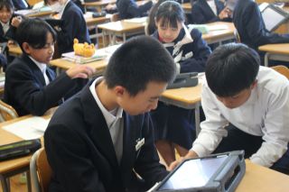 5月15日(木)本日2校時の校内の様子です。明日からの中間テストに備えて、自分のペースで学習に取り組んでいるクラスもありました。また、デジタル教科書を利用したり、発表に電子黒板を使用したりするなど、ICT機器を効果的に活用している場面も見られました。