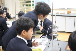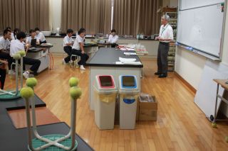 6月6日(金)3校時に、理科教室で教育実習生が「理科」の査定授業を行いました。「酸化物から酸素をとり除こう~さまざまな化学変化~」という単元で、子どもたちが還元(酸化物から酸素をとり除く化学変化)が起こる条件について理解する授業でした。マグネシウムは二酸化炭素の中で燃焼するか?という実験をメインに行い、実験の考察を化学反応式を使って行うなど、とてもわかりやすい理科の授業だったと思います。