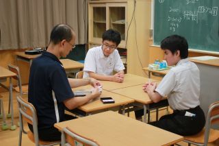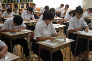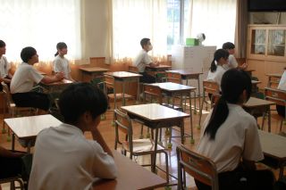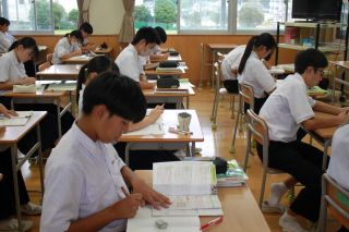 6月16日(月)日本の夏の特徴のひとつである蒸し暑さを肌で感じる日がやってきました。写真は、2校時の授業の様子です。この嫌な天候にもかかわらず、生徒は期末テストに向けて集中して学習に取り組んでいます。