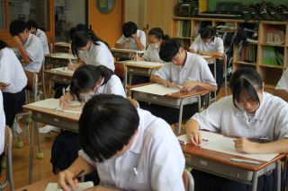 6月20日(金)昨日、ホームページでお知らせした通り、本日より5教科テストが始まりました。1校時の音楽科のテストに続き、2、3校時に、1年生は数学科と英語科、2年生は国語科と社会科、3年生は英語科と理科のテストを受けています。朝から日差しが強く、6月の中旬で、梅雨時期とは思えないほどの暑さです。子どもたちは、本日の放課後からご家庭でも月曜日のテストに向けて備えることと思いますが、体調に留意しながら努力を重ねてほしいと思います。