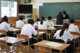 10月28日(火)1校時に、文化祭の振り返りを行いました。3校時には、1年生が英検IBAテストを受けています。1,2年生は、6校時の後に合同学活を実施し、生徒会役員選挙に向けて動き始めました。文化祭が終わり、3年生は自分の進路希望の実現に向き合う時期に、2年生は和木中学校の中心となって動く時期に、1年生は2年生を支えながら多くの学校行事に取り組む時期になりました。写真は、4校時の授業の様子です。