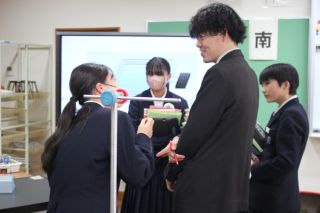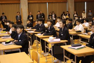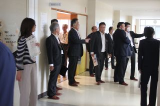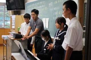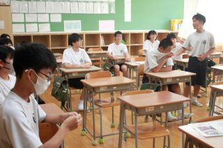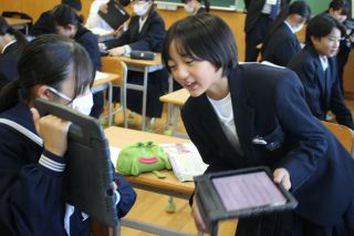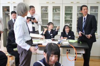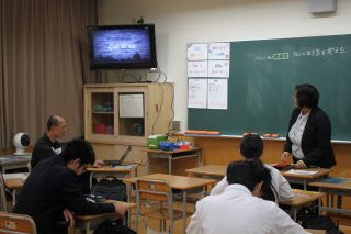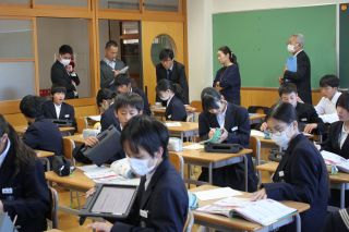 7月7日(月)2校時に、和木町議会総務文教常任委員会に所属される5名の方々が来校され、2年生の英語科の授業を視察されました。デジタルを使った授業について、本校生徒がタブレットを活用する場面を観られ、いくつかの質問をいただきました。生徒は緊張しながらも、堂々と調べたことを発表していました。