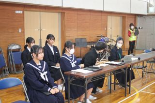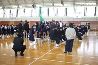 5、6校時には、全校生徒が体育館に集まり、生徒総会を実施しました。先週、各クラスで実施したミニ生徒総会で話し合ったことをもとに、特に議題2「家庭学習の取組」について、多くの生徒が目的をよく理解した建設的な意見を発表しました。総会で出された意見を今後の学校生活に生かしてほしいと思います。