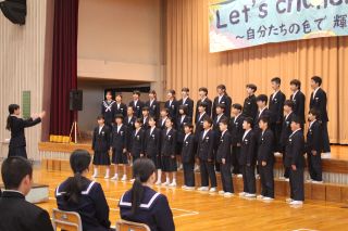 10月16日(木)本日3校時の授業の様子と4校時の合唱練習の様子を写真でご覧ください。先日お知らせしましたが、岩国YMCAの学生による学校保健実習が本日で終了します。彼らは3校時、2年生の保健体育科の授業に参加していました。おかげで、生徒のバドミントンに向かうモチベーションが上がっていたように思います。