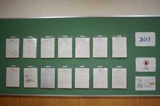 10月20日(月)中間テスト2日目、最終日です。3校時には、QUテストも実施されます。校内のいくつかの掲示物とともにテストの様子を写真でご覧ください。