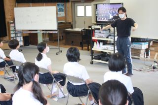 6月10日(火)本日は、和木町教育委員会計画訪問にあわせて、町ICT合同研修会が本校で4校時から実施されました。参観していただいた授業は、4、5校時でした。その後、多目的スペースで和木小学校及び和木こども園と本校教職員が授業の諸活動を題材にして、ICTの活用や町研修主題「こどもまんなかの授業づくり」、中学校研修主題「『聴く』ことで学び合う関係をめざして」に基づく指導の工夫等について活発に意見交換をしました。最後に、中村学園大学教育学部山本朋弘教授からおよそ40分間にわたり、本校教員の指導の工夫に着目し、具体的に写真を示していただきながら参加した全教職員に向けてご指導をいただきました。本日いただいたご意見やご指導を記憶にとどめ、しっかりと振り返りをして、教職員一同、明日からの学習指導に生かしていきたいと思います。