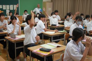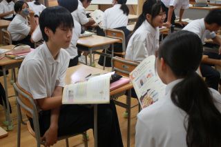9月10日(水)5校時の授業風景です。教員の問いかけに対して、自分の言葉でしっかりと説明する生徒が多く、こうした姿勢で今後もさらに学びを深めてほしいと思います。